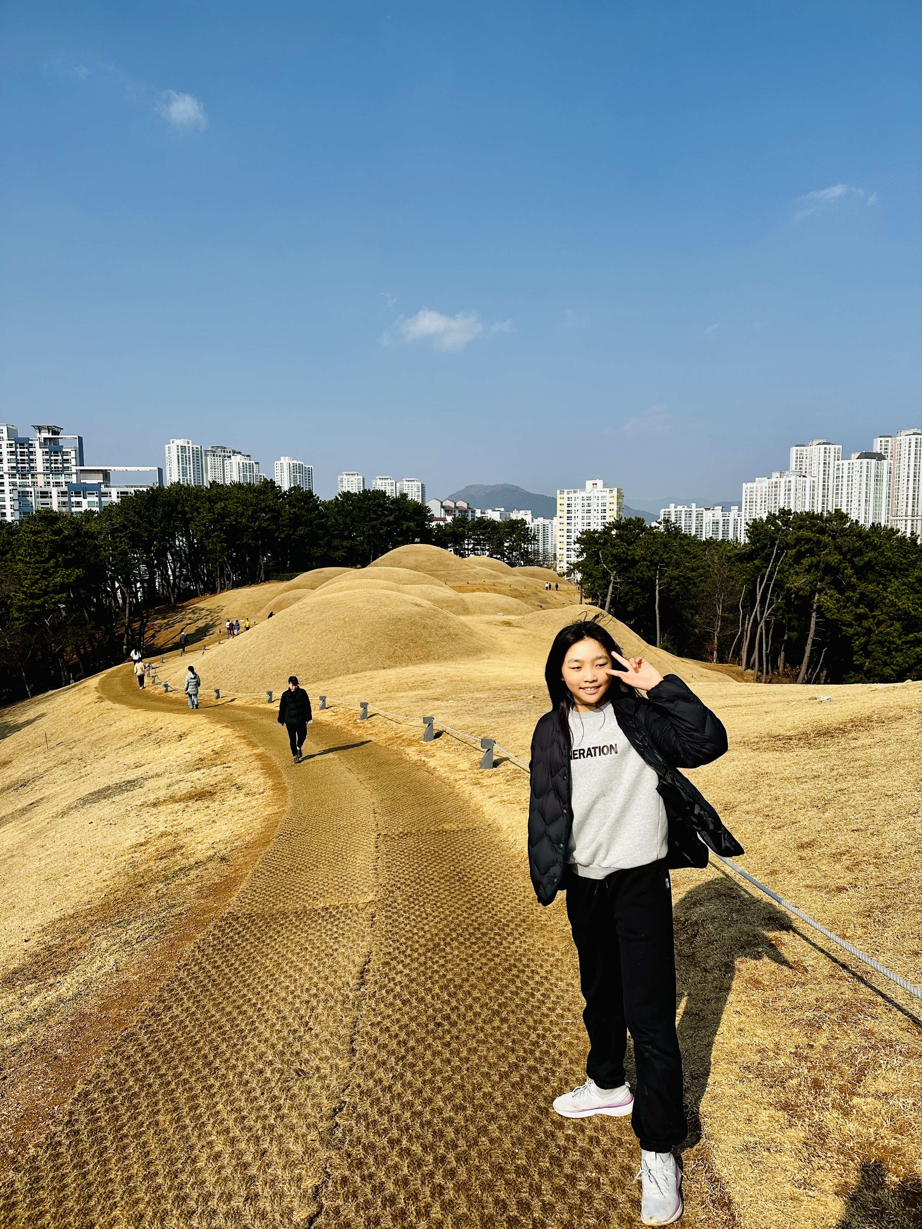 경주를 가야 볼 수 있는 아주 큰 왕릉과 달리 옛날 마을 부족장 사이즈 고분 가까이 볼 수 있어 분위기 이색적이 었다.
