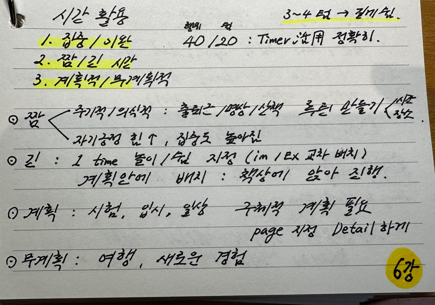 주기적/의식적 짬 시간 활용 : 출퇴근/명상/ 산책 -> 적극 활용 루틴 만들기 (시간/장소)