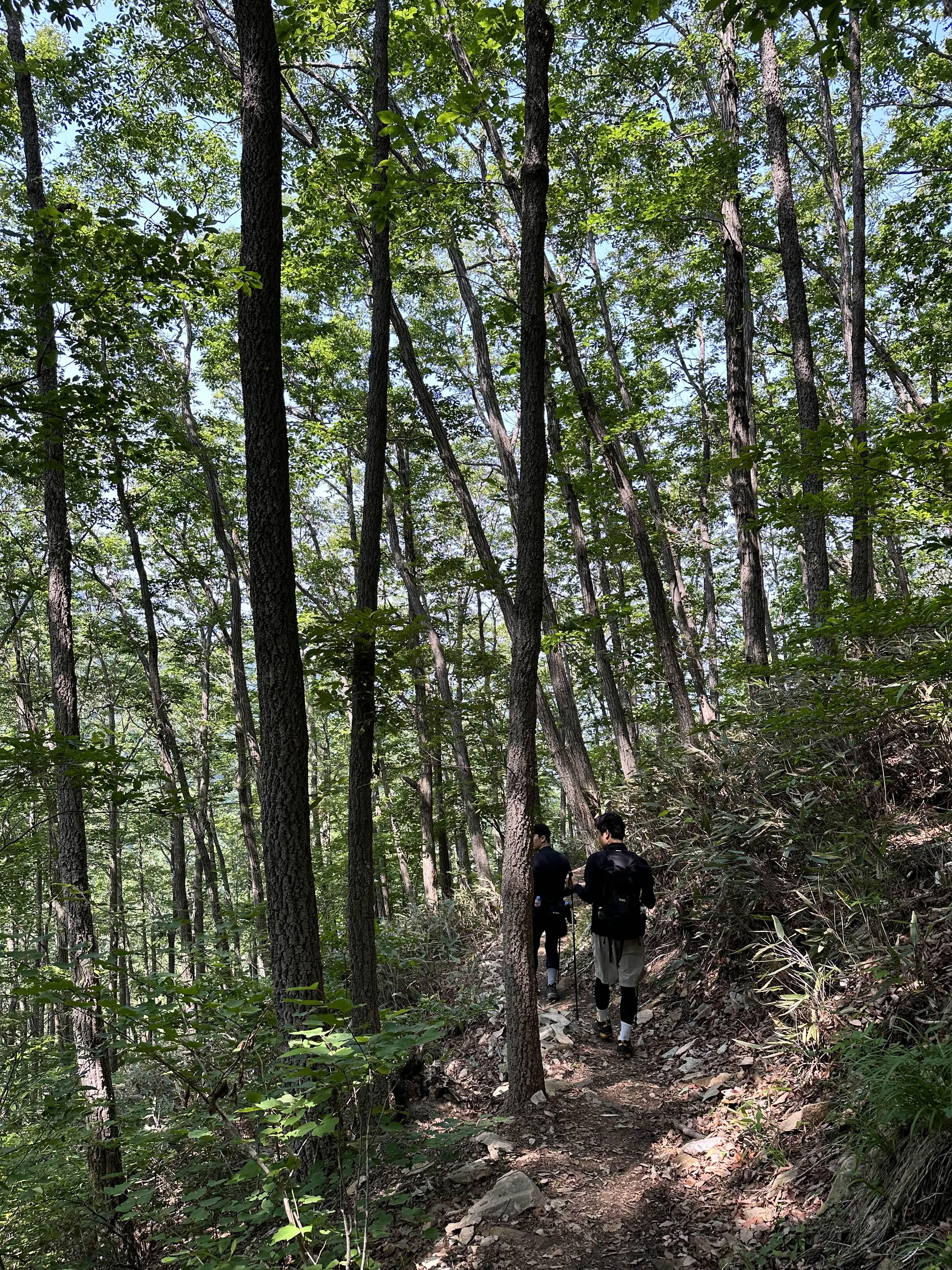 심장 박동수가 높아지고, 이마에 땀방울이 흐르는 와중 수풀이 우거져 있어 햇빛이 많이 들지 않아 산행하기 좋았다. 가끔씩 영화처럼 한줄기 햇빛이 신비로움을 자아낸다.