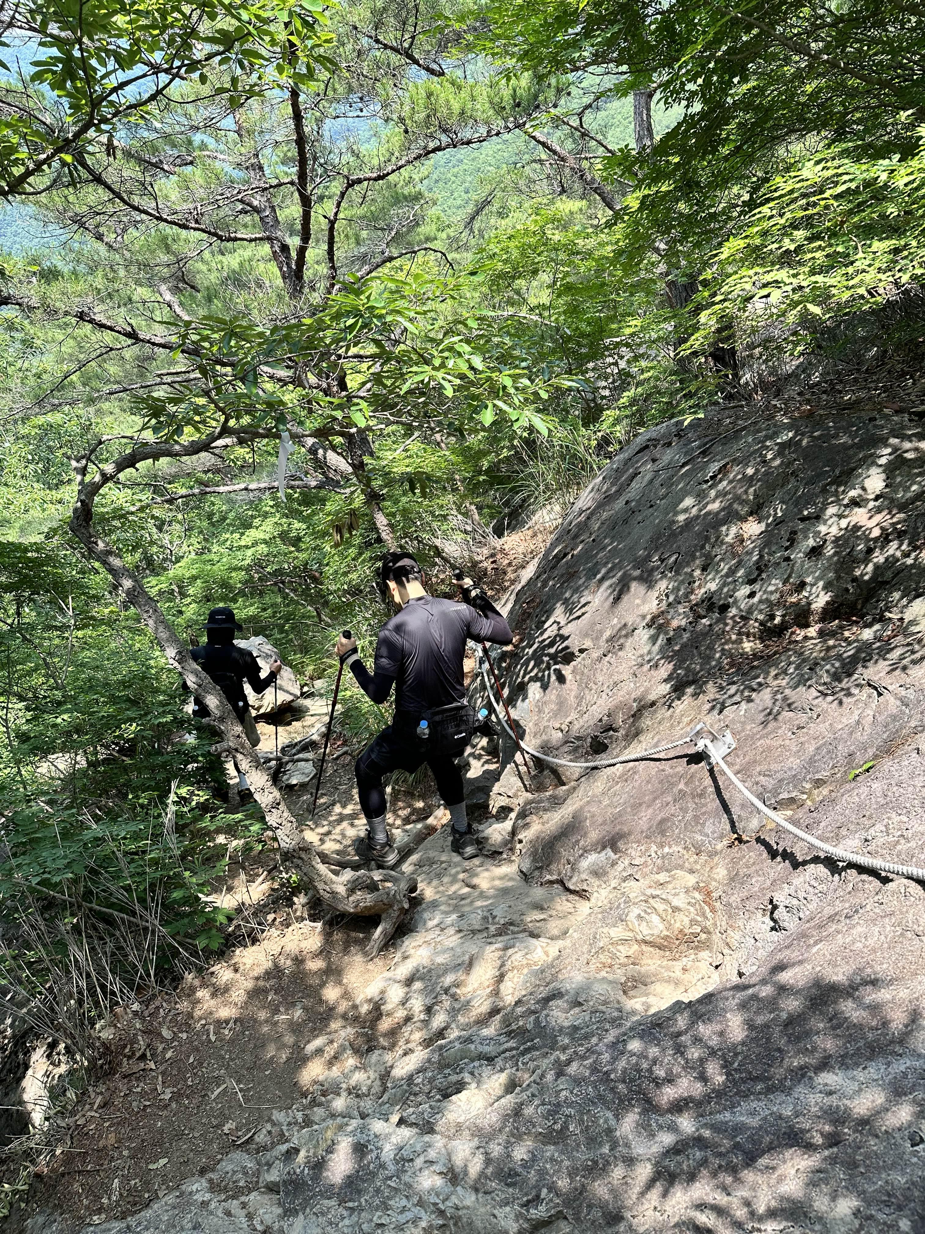 밧줄을 타고 내려오는 길이 오히려 험준하다.