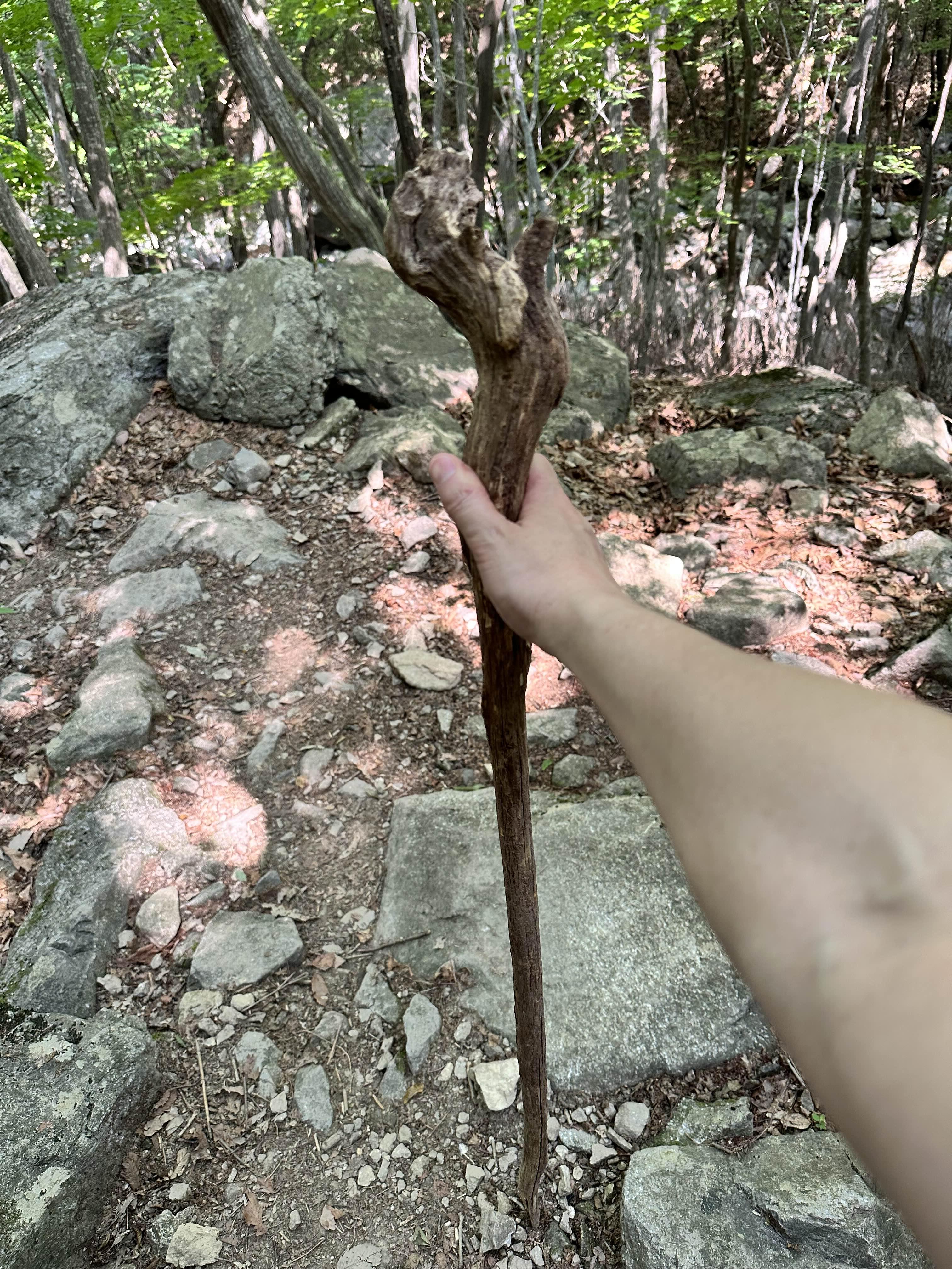 정상에 가까울수록 돌들이 많아 걷기가 쉽지 않았다 입구부터 같이 동반해 준 지팡이 하산 때도 함께 한다.