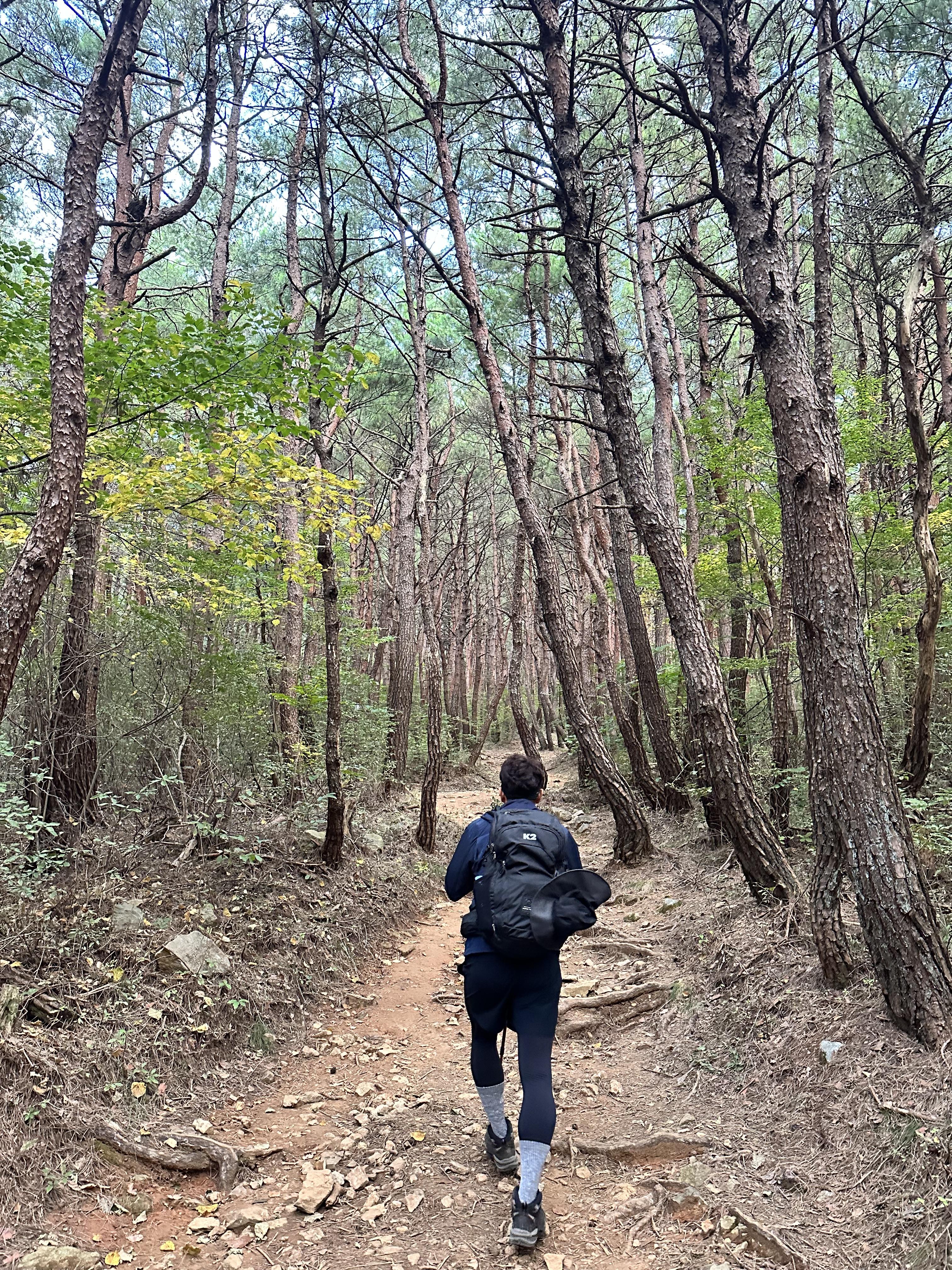 뭉게 구름이 뭉게 뭉게 하다. 소나무 나무사이를 지나치며 영축산으로 출발